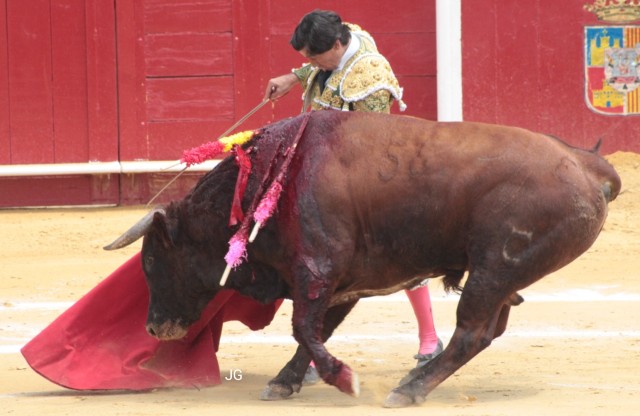 En Cinco Villas, cinco toros de Cerro Viejo y uno de Maravillas. Éste fue por mucho el mejor de la tarde, noble, claro y sin la mansedumbre que caracterizó a los del hierro titular.