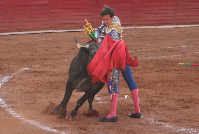 Eduardo Neyra pechó con un áspero abreplazaQue no permitió el toreo en redondoY del que se deshizo después de un breve intento de torear por la caraEl cuarto fue el dulce de la novilladaAunque le dió este achuchón toreando de rodillasSin embargo la faena se alargó Y todo quedó en el auto premio de la vuelta al ruedo Deslucido pero con motor el segundoCon el que Emiliano Robledo solo pudo agarrarse de los cuartos traserosPero con esta estocada cortó una oreja benevolente El quinto sangraba de la nalga izquierdaRobledo estuvo bien con el capotePero el novillo no se confío, solo tiró derrotesHasta que vino el achuchón fuerteEsta estocada valió otra oreja ya con abierto sabor a pachangaEmocionante cambiado por la espalda de Luis Ángel GarzaA quien se le ven hechuras de toreroPero mucho verdorTodavía logró buenos muletazos con el cierraplazaComo este sabroso derechazoBuena tarde con los palos de «Lupillo»……de Héctor García, y de media Unión de Subalternos